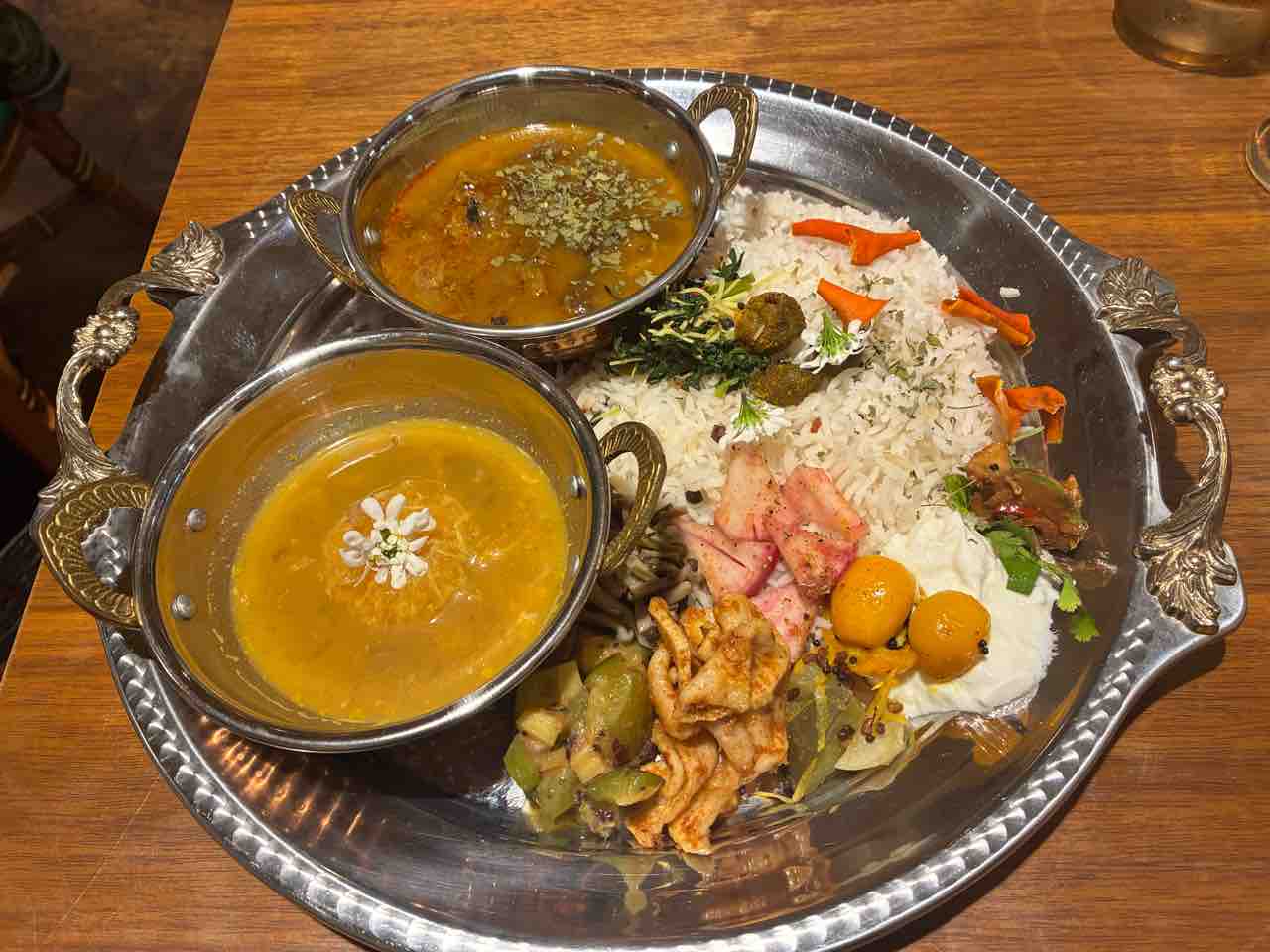 今年のしめくくりに食べたかったのです。2種のカレーは、天然なめこと鶴首カボチャのカレー、風布無農薬みかんのカレー。みかん??でも美味しいのです。独歩ちゃんにかかるとなんでも美味しいカレーになってしまうのです。今回も独歩ちゃんワールド全開の美味しくて美しいプレート、ごちそうさまでした
