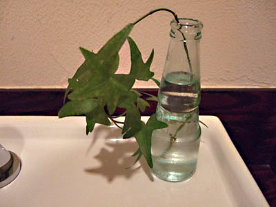 洗面台の横にはラムネのような風合いの空き瓶に緑が一刺し。こんな所にもセンスのよさを感じてしまいます♪