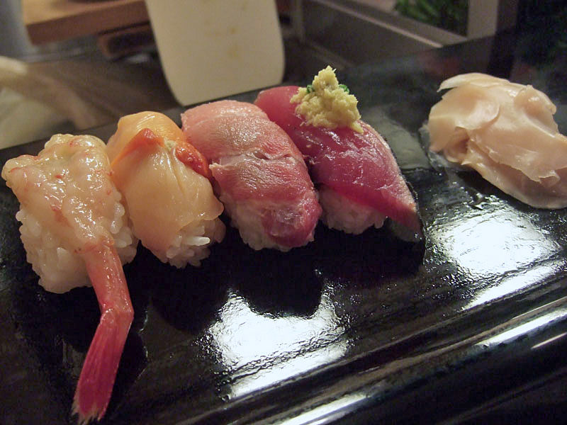 いきなりカツオ、トロ、赤貝に甘エビと大ネタが登場[E:heart04]