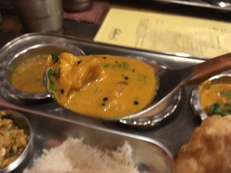 いろいろ、というかすべてお代わりしたいくらいでしたが、唐突に知ったので、控えめにいちばん感動したパンドラ・ラッサと、ライスを少量お願いしました。ちなみに友人も同じだったので笑えました。