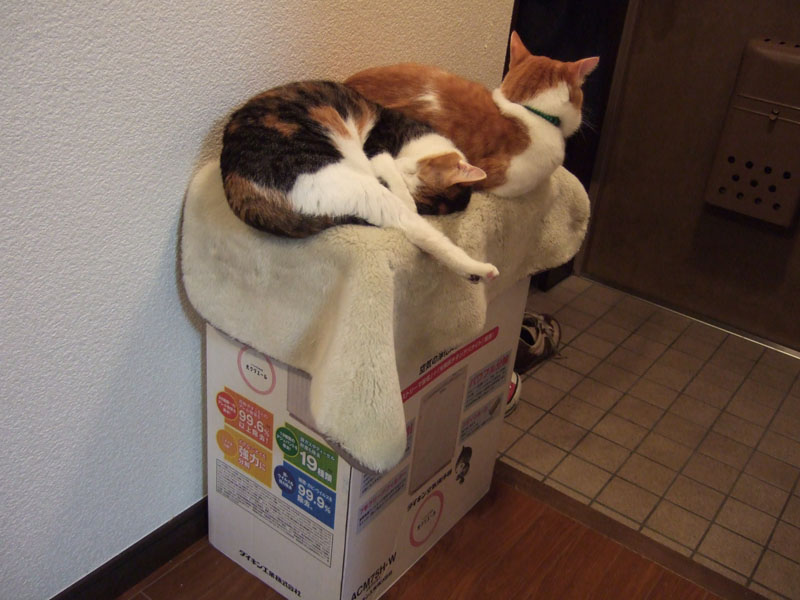 ダンボール+フリース=ねこ(笑)