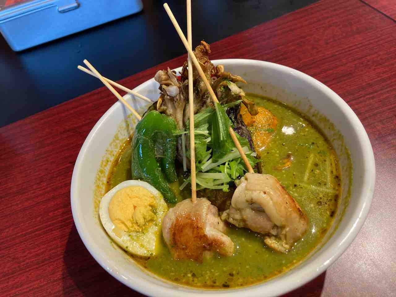 今日のランチは、suageでパリパリ知床どりと野菜カレーを吉祥寺限定グリーンスープで。