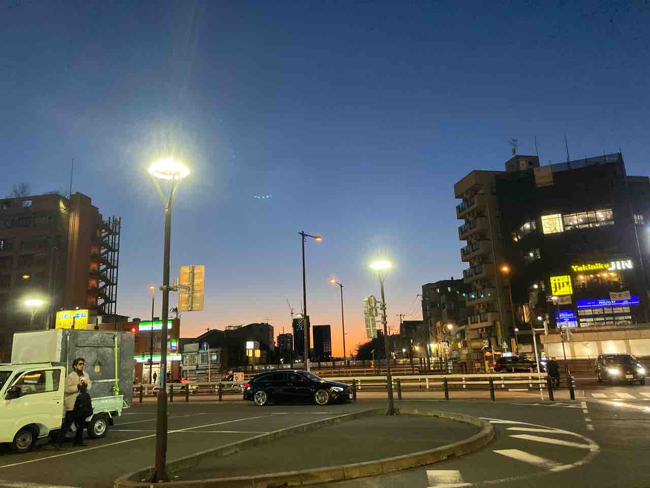 夕焼けがきれいで撮った写真をさっき見返してみたら真ん中ら辺に妙な連続した光が…。