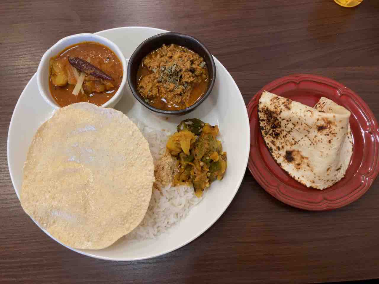 今日のランチは、四次元食堂で、カレー2種プレートから芽キャベツとごぼうのトマトマサラカレー、青山椒キーマ。だいぶご無沙汰の訪問。以前食べたとき量が多すぎて足が遠のいていましたが、最近メニューチェンジしてほどよい量に。ロティがつくのもうれしい。レモンライス目的だったが大好きな山椒を使ったカレーがあったので2種プレートに変更。好みの味でおいしかった。次回こそレモンライスを食べよう。