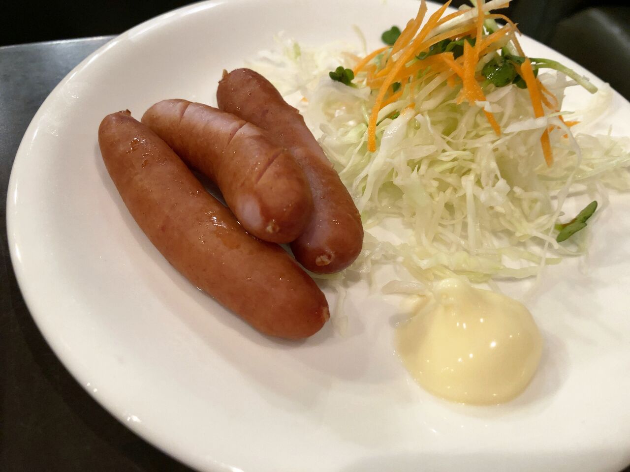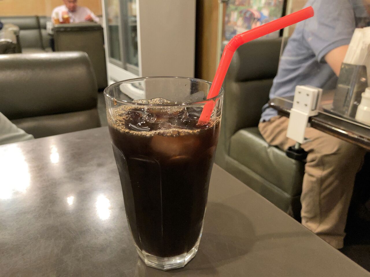 さて注文したのは、カヤシマワクワクセットから、わたしがナポリタンとポークジンジャーのセット、娘が同じくナポリタンと粗挽きソーセージのセット。すべての食事メニューがドリンクサービス付きで、アイスコーヒーをチョイス。娘は水がいちばん好きなのでなしで。