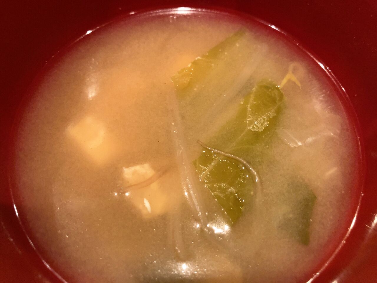 具はキャベツ、もやし、お豆腐。ナポリタンにお味噌汁、不思議な感じでしたが単体で楽しめました。