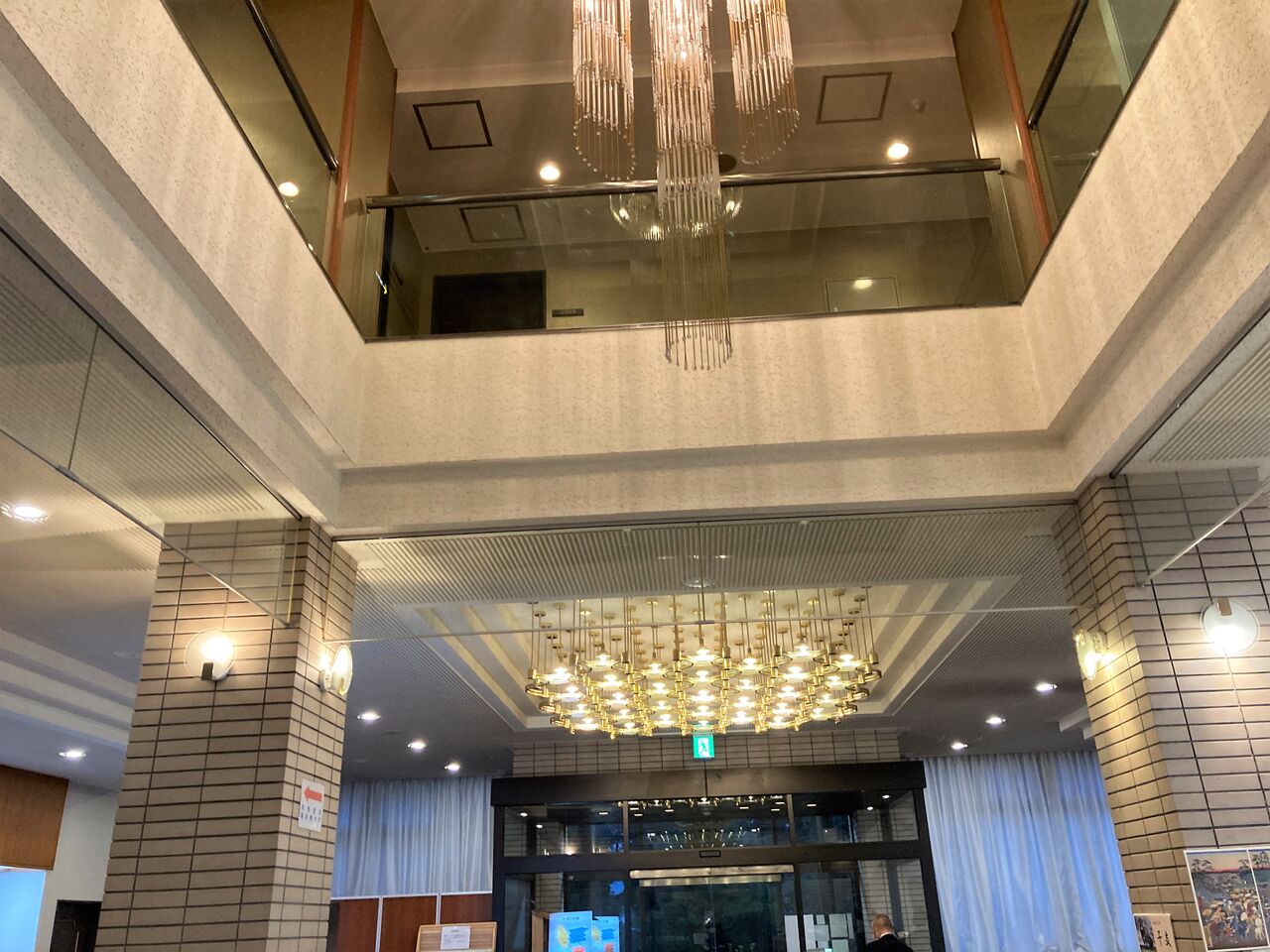 おお、ロビーが吹き抜けで豪華なシャンデリアが
