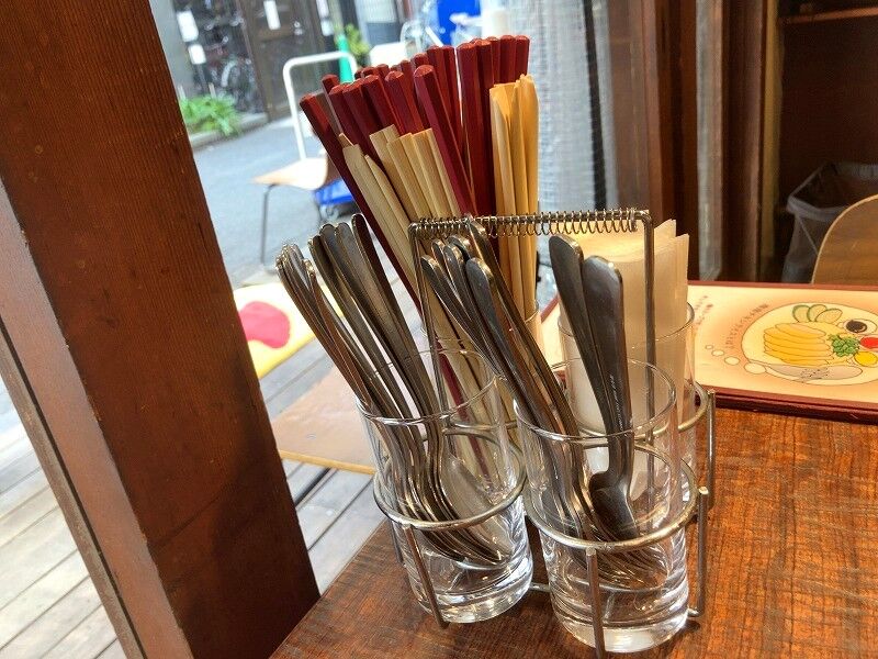 カトラリー類は瓶にまとめてセット。