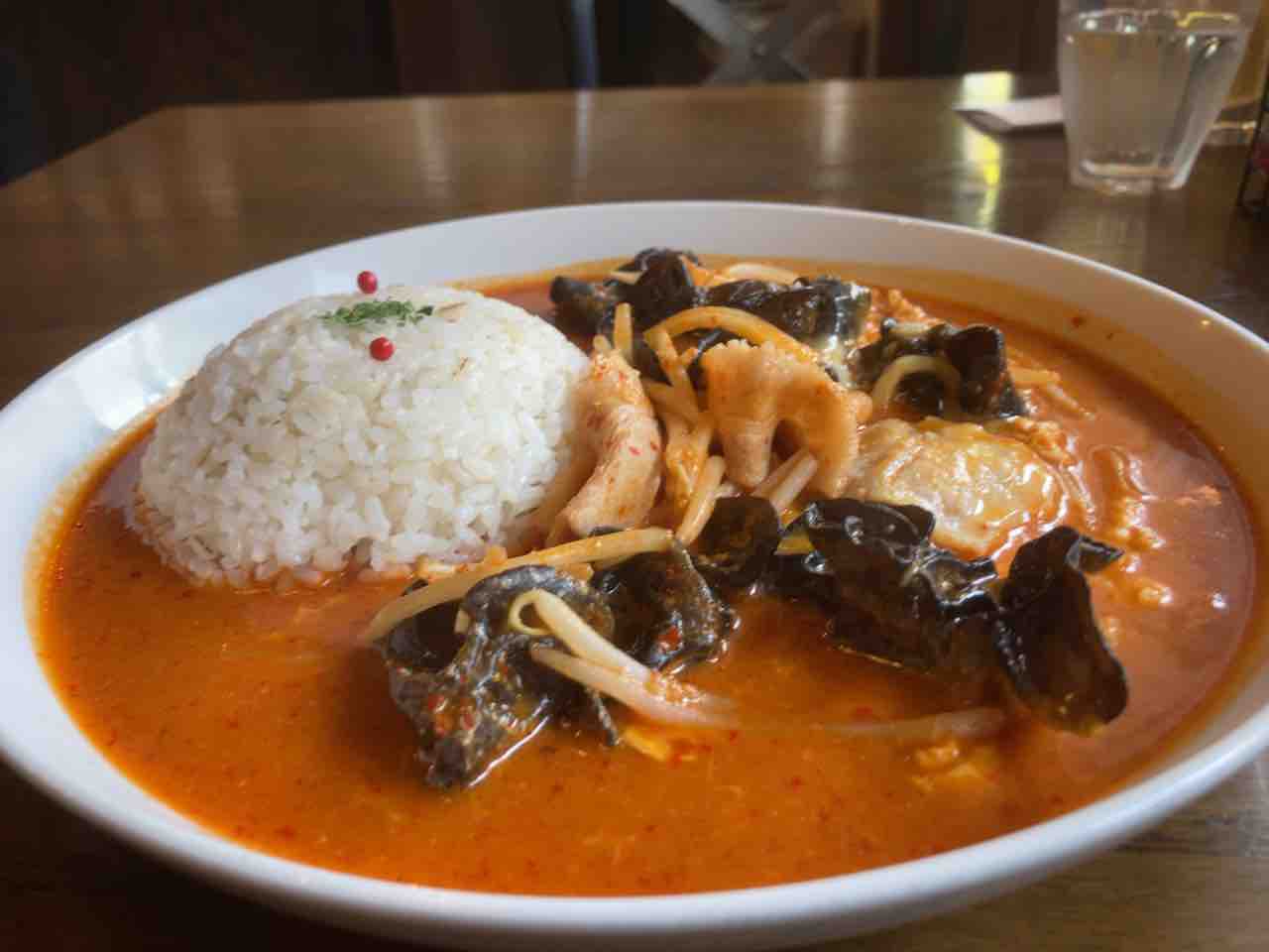 今日のランチは、シシカリで、スタミナカレーの4辛にふわたまトッピング。