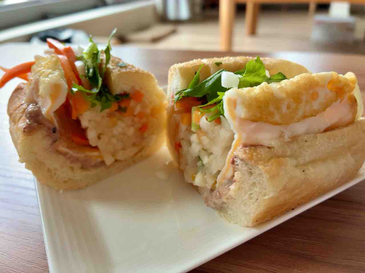 今日のランチは、バインミー⭐︎サンドイッチでミニをテイクアウト。卵と豚パテのシンプルなヤツが最近のお気に入り😋
