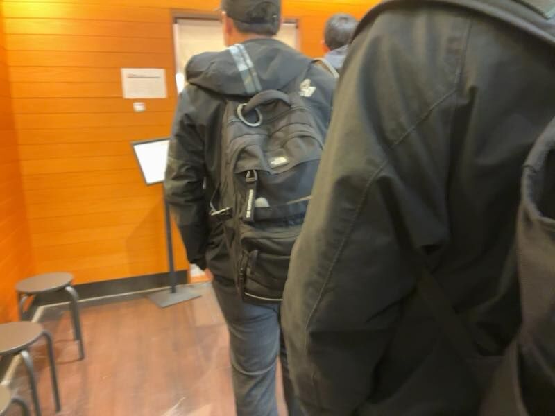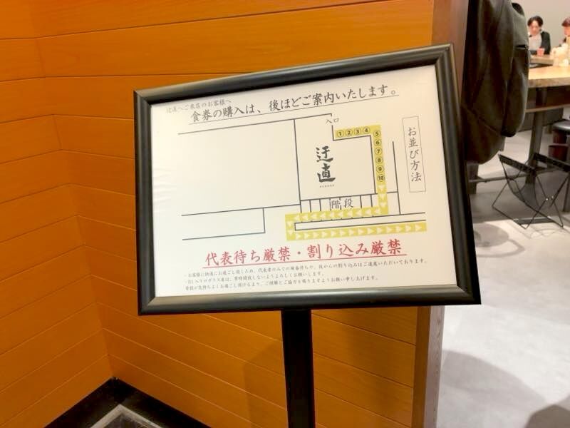 私の前に並んでいる人の並び位置が、たぶんここじゃないってところで、その人もおそらくお初、そして私もお初なのでそのまま後ろに並びました。少しして私の後ろに並んだ若い男性に「ここは迂直の並びですか?」と話しかけられその方もお初と判明。お初3人。でもその後すぐに店員さんがチェックに来られ、正しい並び位置へと案内してくださいました。ホッ。