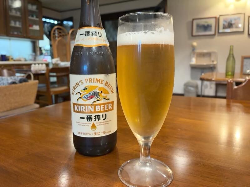 一番搾りの中瓶。ちなみに他のゲストもほぼ全員お酒をたしなまれてました(わたし調べ)