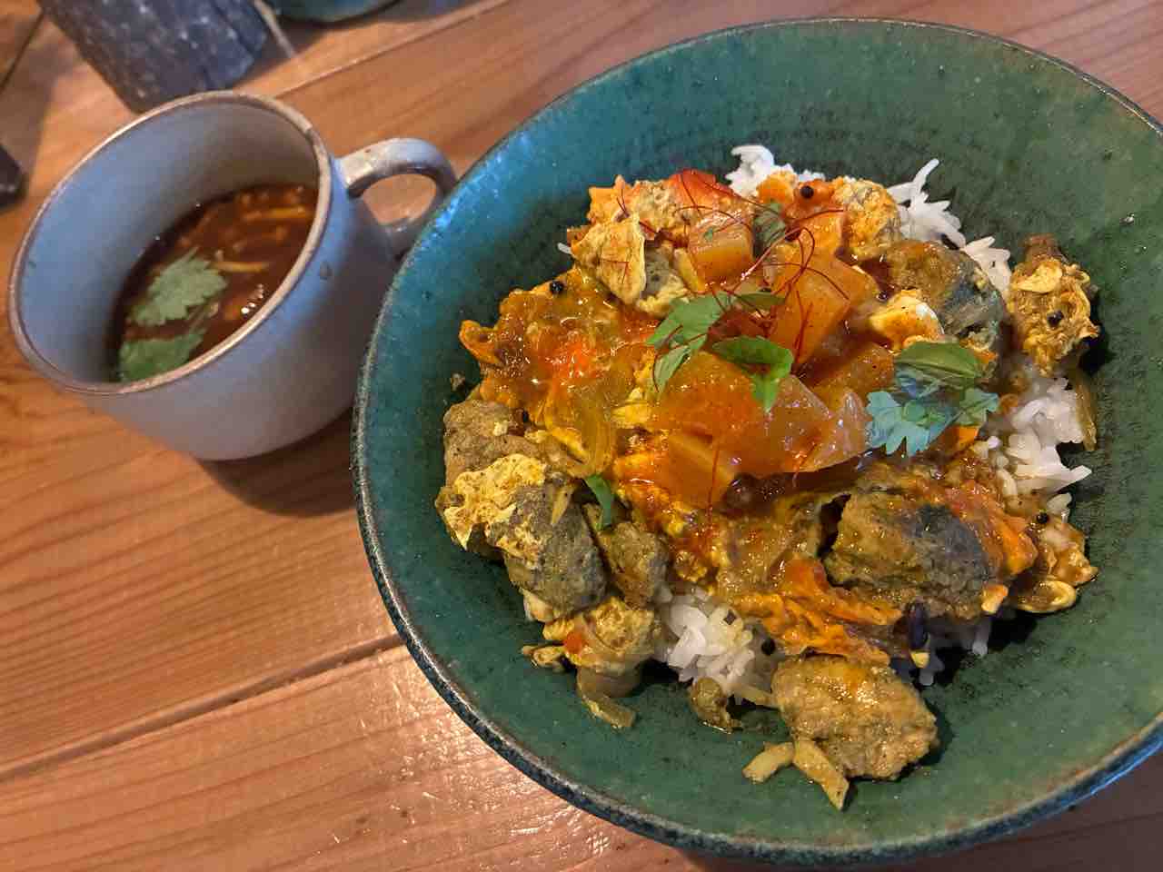 ひと口食べてみたらスッパ!なんだろうこの酸味。酢?でもいい酸っぱさ。変わった味だけどスプーン止まらない系のうまさ。中華とネパールの融合と説明にあったけどどこか香港ぽく感じた。セットのミニ担々麺も特に期待してなかったらこれまたうまし!ふと壁の貼り紙に目をやるとなんと今月26日でこちらのイートインは終了するそうな。なんてタイミング。これは呼ばれたかな?ということで結果オーライのランチとなりました。