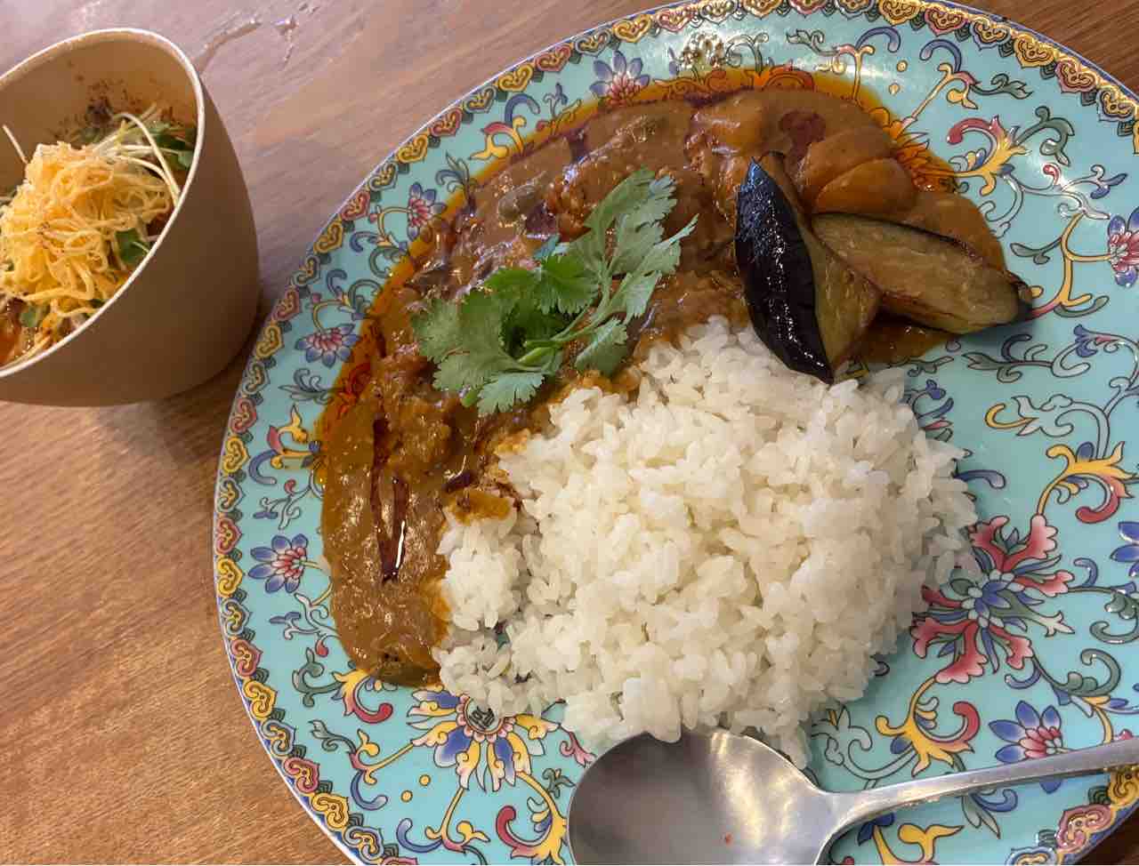 ひと口食べてみたらスッパ!なんだろうこの酸味。酢?でもいい酸っぱさ。変わった味だけどスプーン止まらない系のうまさ。中華とネパールの融合と説明にあったけどどこか香港ぽく感じた。セットのミニ担々麺も特に期待してなかったらこれまたうまし!ふと壁の貼り紙に目をやるとなんと今月26日でこちらのイートインは終了するそうな。なんてタイミング。これは呼ばれたかな?ということで結果オーライのランチとなりました。